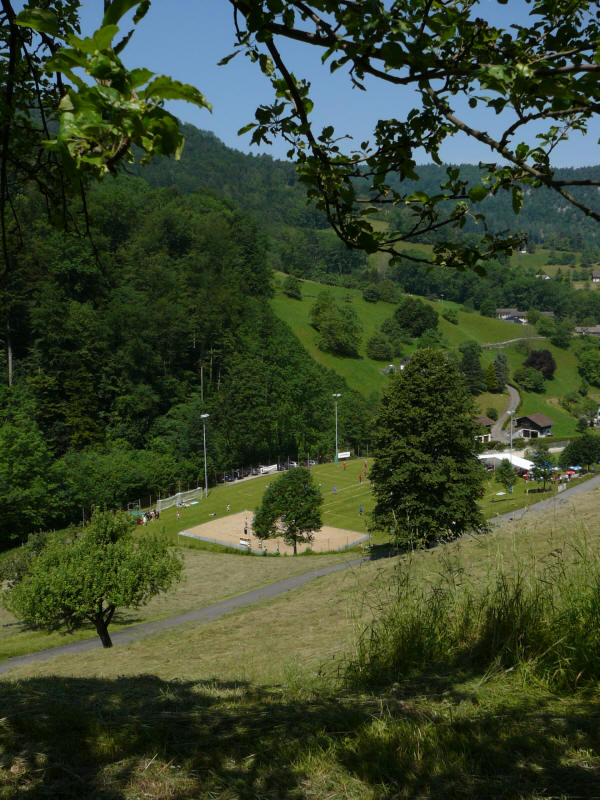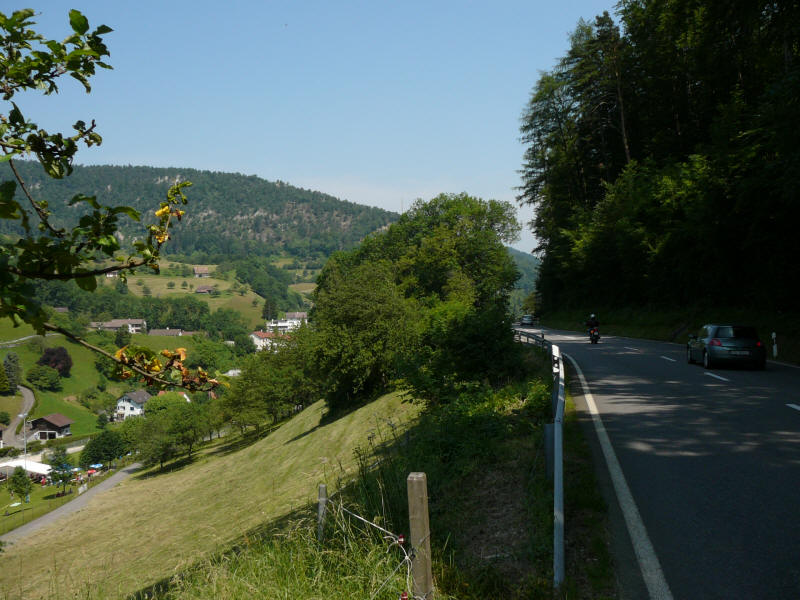 Mittags Verfahren bei "Bubendorf", nähe Liestal. Ein nettes Ehepaar half uns und holte sogar Karten aus dem Haus. Wir hätten gar nicht erst den Berg nach "Ramlinsburg" hinauffahren sollen - unten an der Straße hatten wir ein Schild [54] übersehnen, was nach rechts zeigte. Es ging auf einem Veloweg parallel zur Straße weiter. Ein Test für starke Anstiege, die noch folgen sollten... Schaut mal auf das Video hier rechts vom Text. Mit rechter Maustaste auf das Video, dann auf Abspielen klicken. |
