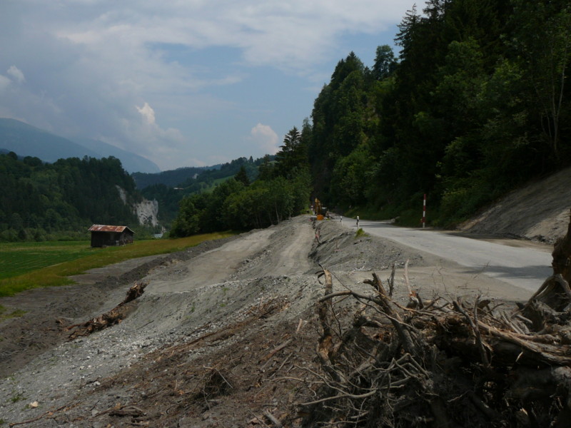 Mittags Es folgte eine wilde Fahrt hoch und herunter links und rechts - ich verlor meine Orientierung. Das machte überhaupt nichts, denn es gab nur diese eine Straße zur Rheinschlucht. Ein berauschender Ausblick und die gefährlichste Straße der ganzen Tour! Hier ist der Weg in den Fels gehauen worden. Es gibt ein paar Ausweichstellen, sonst passen noch nicht einmal zwei PKW's aneinander vorbei.